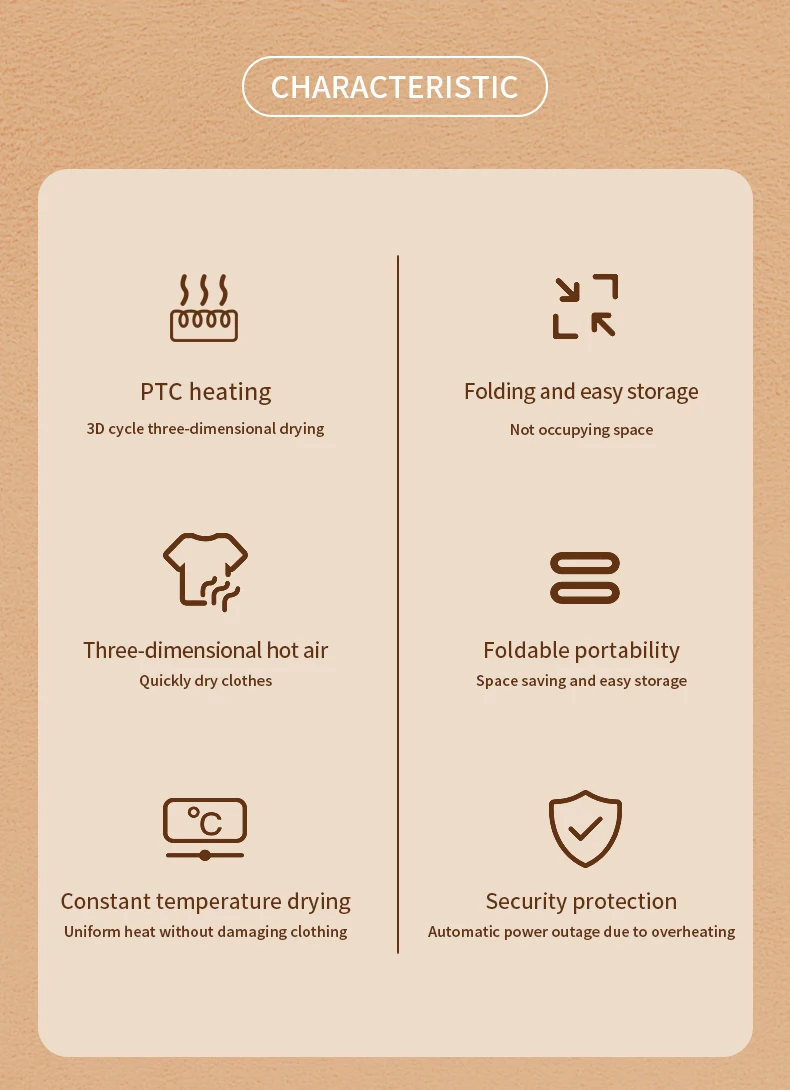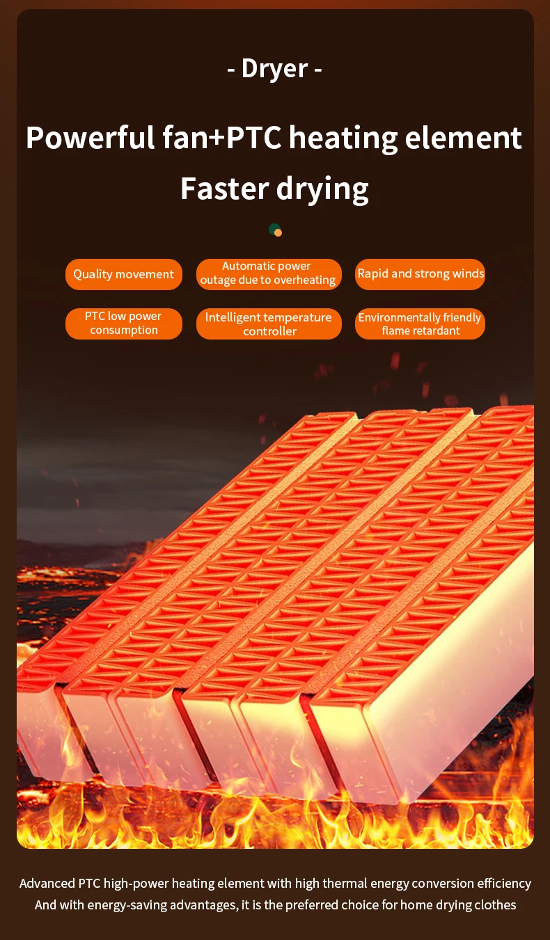 Secador de ropa portátil, calentador eléctrico de doble uso, secador de aire caliente plegable